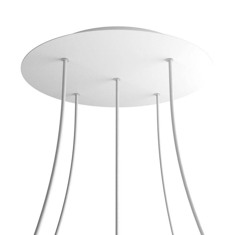 Informations complémentaires | Diamètre du chapeau de plafond : 30 x 3,5 cm. La plaque blanche a un diamètre de 40 cm. Ces plaques de plafond sont dotées de trous latéraux qui permettent de les relier les unes aux autres. Veuillez noter qu'il n'y a pas de cordon d'alimentation ! |