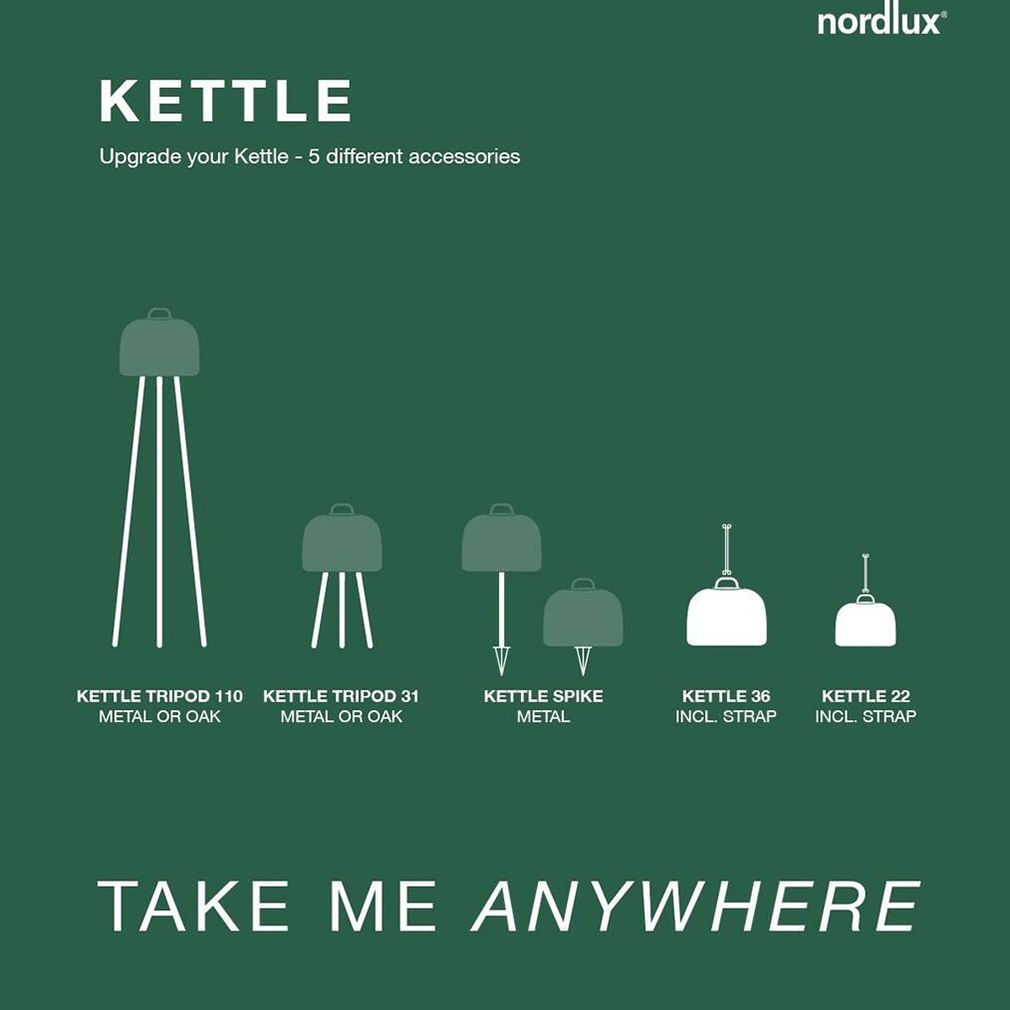 Informations complémentaires | Cet accessoire transforme Kettle en une lampe à pointes portable qui peut être placée dans le parterre de fleurs ou le long de l'allée, par exemple. |